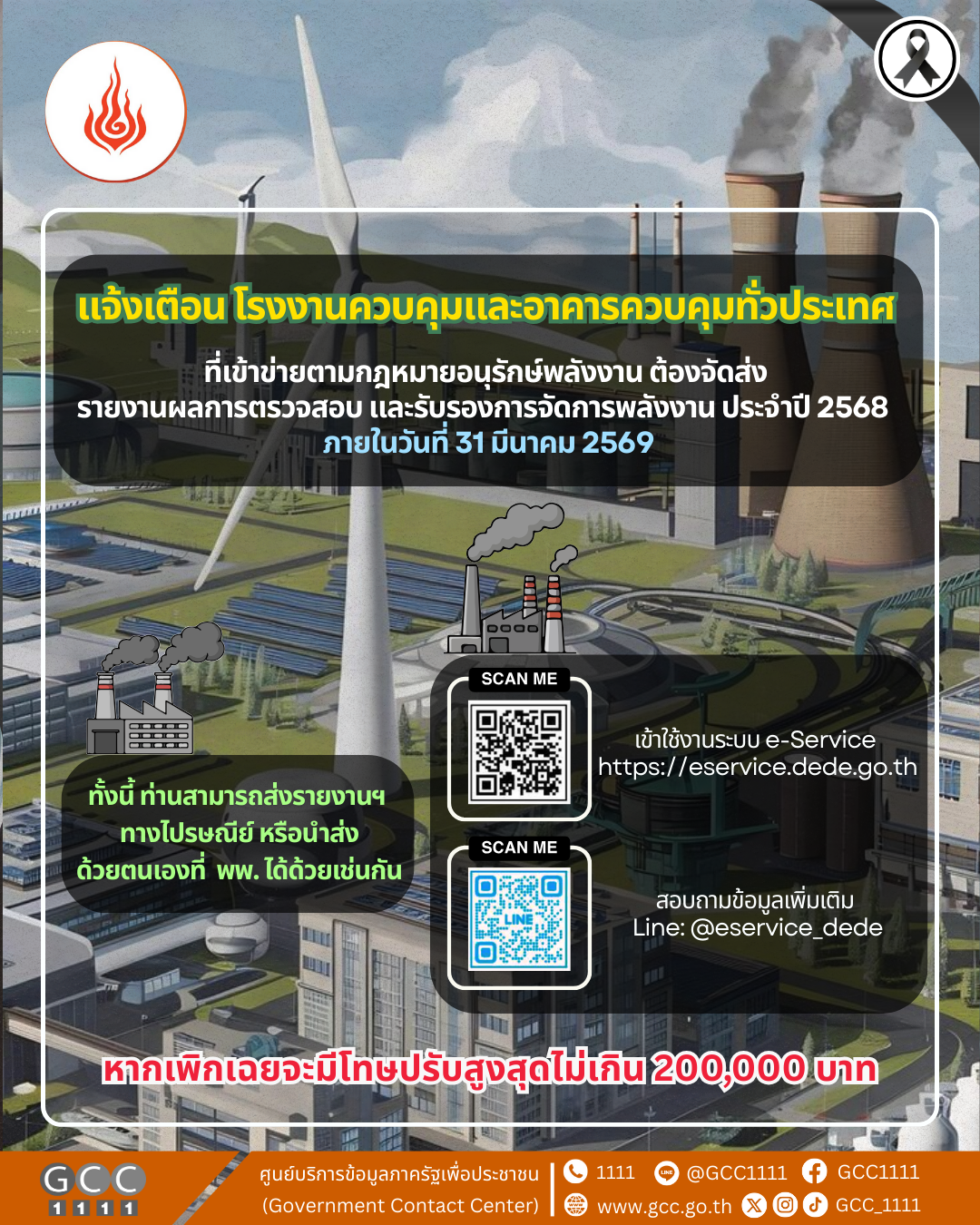 พพ. แจ้งเตือน โรงงานควบคุมและอาคารควบคุมทั่วประเทศ