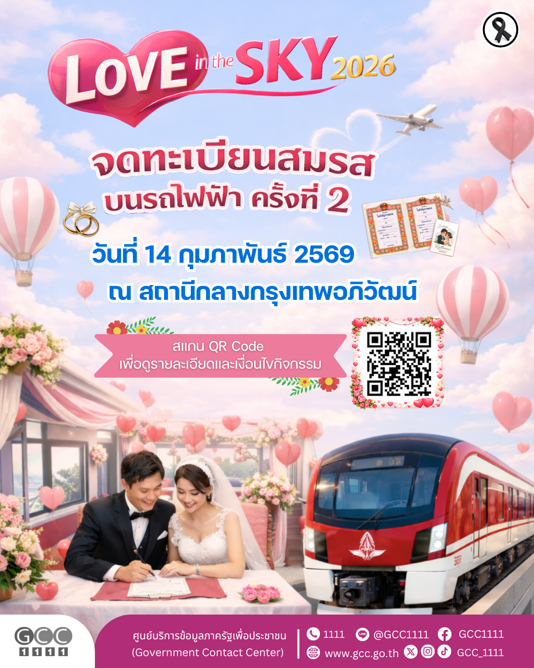 รถไฟฟ้าสายสีแดง จัดกิจกรรมจดทะเบียนสมรสบนรถไฟฟ้า ครั้งที่ 2 LOVE in the SKY 2026 วันที่ 14 กุมภาพันธ์ 2569 ณ สถานีกลางกรุงเทพอภิวัฒน์