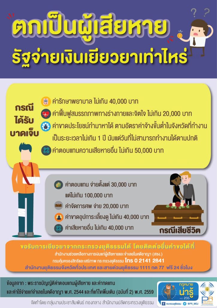 กระทรวงยุติธรรม แนะนำกฎหมายน่ารู้ “ตกเป็นผู้เสียหาย รัฐจ่ายเงินเยียวยาเท่าไหร่”