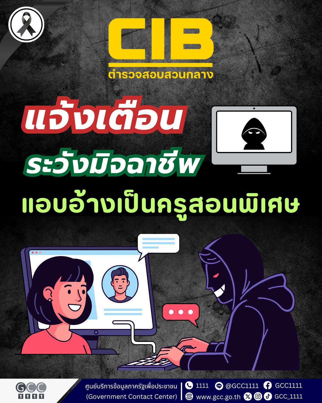 กองบัญชาการตำรวจสอบสวนกลาง แจ้งเตือนระวังมิจฉาชีพ แอบอ้างเป็นครูสอนพิเศษ