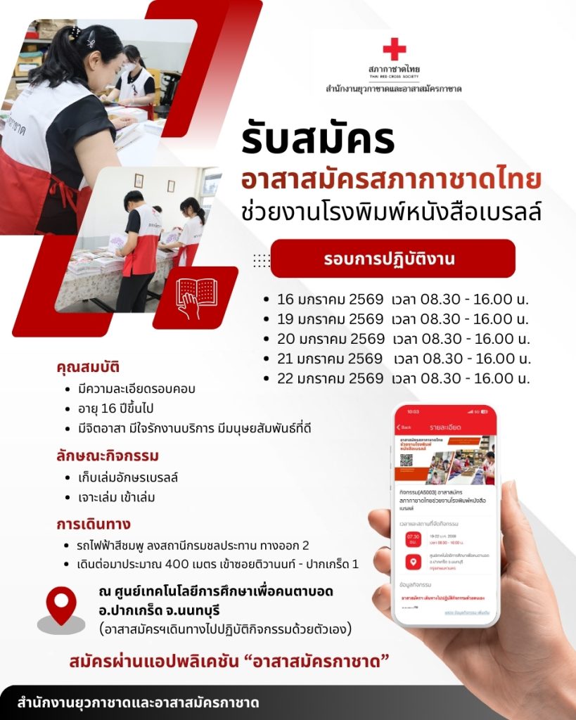 สภากาชาดไทย ชวนจิตอาสามาร่วมแรงร่วมใจช่วยงานโรงพิมพ์หนังสือเบรลล์