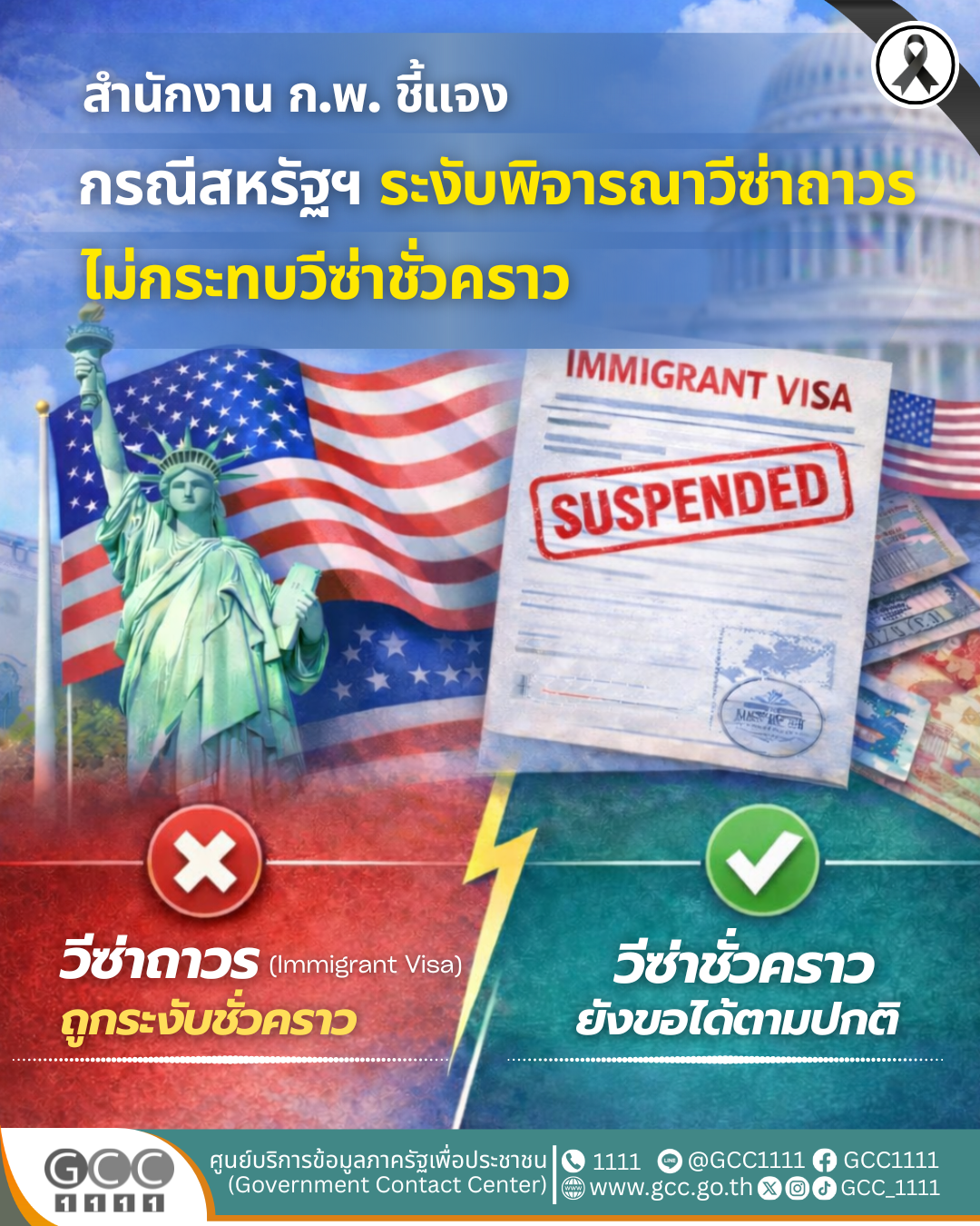 สำนักงาน ก.พ. ชี้แจงสหรัฐฯ ระงับพิจารณาวีซ่าถาวร ไม่กระทบวีซ่าชั่วคราว