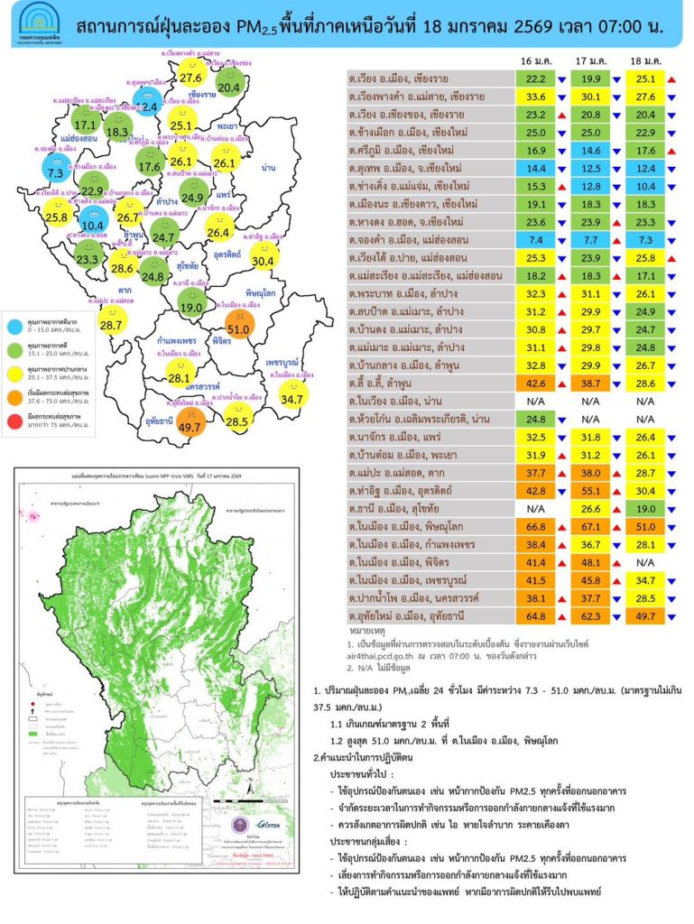 ศูนย์สื่อสารการแก้ไขปัญหามลพิษทางอากาศ รายงานการติดตามตรวจสอบคุณภาพอากาศ ประจำวันที่ 18 มกราคม 2569 เวลา 07.00 น สรุปดังนี้