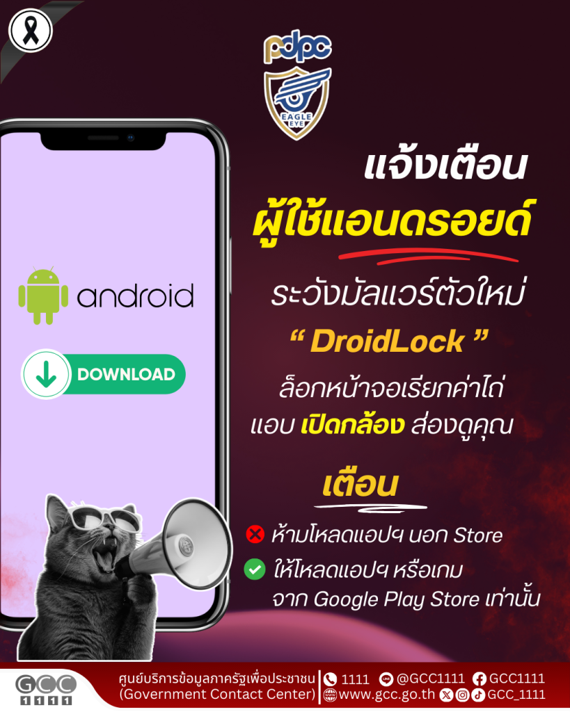ศูนย์เฝ้าระวังการละเมิดข้อมูลส่วนบุคคล เตือนผู้ใช้แอนดรอยด์ต้องระวัง มัลแวร์ตัวใหม่ DroidLock ล็อกหน้าจอเรียกค่าไถ่ แถมแอบ “เปิดกล้อง” ส่องดูคุณ