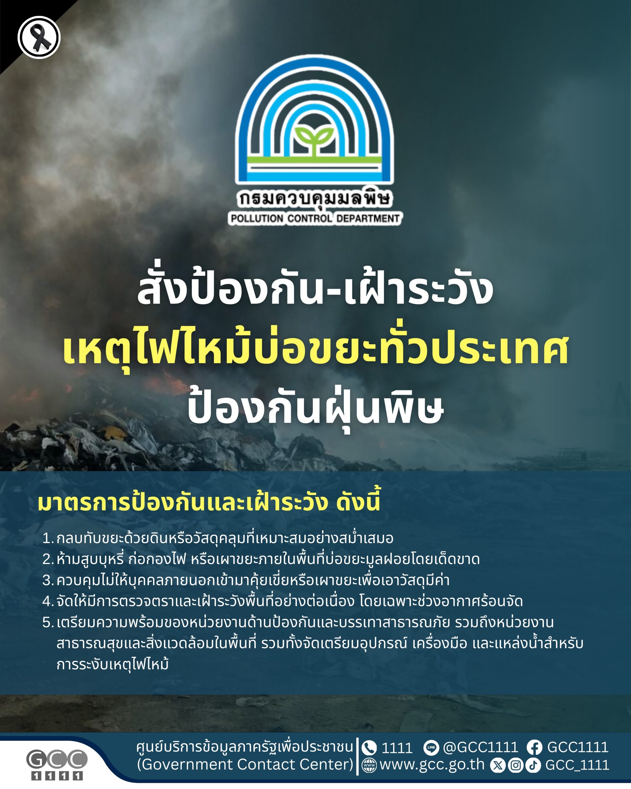 กรมควบคุมมลพิษ เตรียมป้องกัน เฝ้าระวังเหตุไฟไหม้บ่อขยะทั่วประเทศป้องกันฝุ่นพิษ