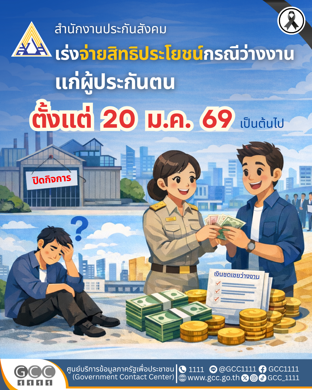 สำนักงานประกันสังคม เร่งทะยอยจ่ายสิทธิประโยชน์กรณีว่างงานแก่ผู้ประกันตน ตั้งแต่ 20 มกราคม 2569 เป็นต้นไป เพื่อบรรเทาความเดือดร้อนของลูกจ้างที่ได้รับผลกระทบ