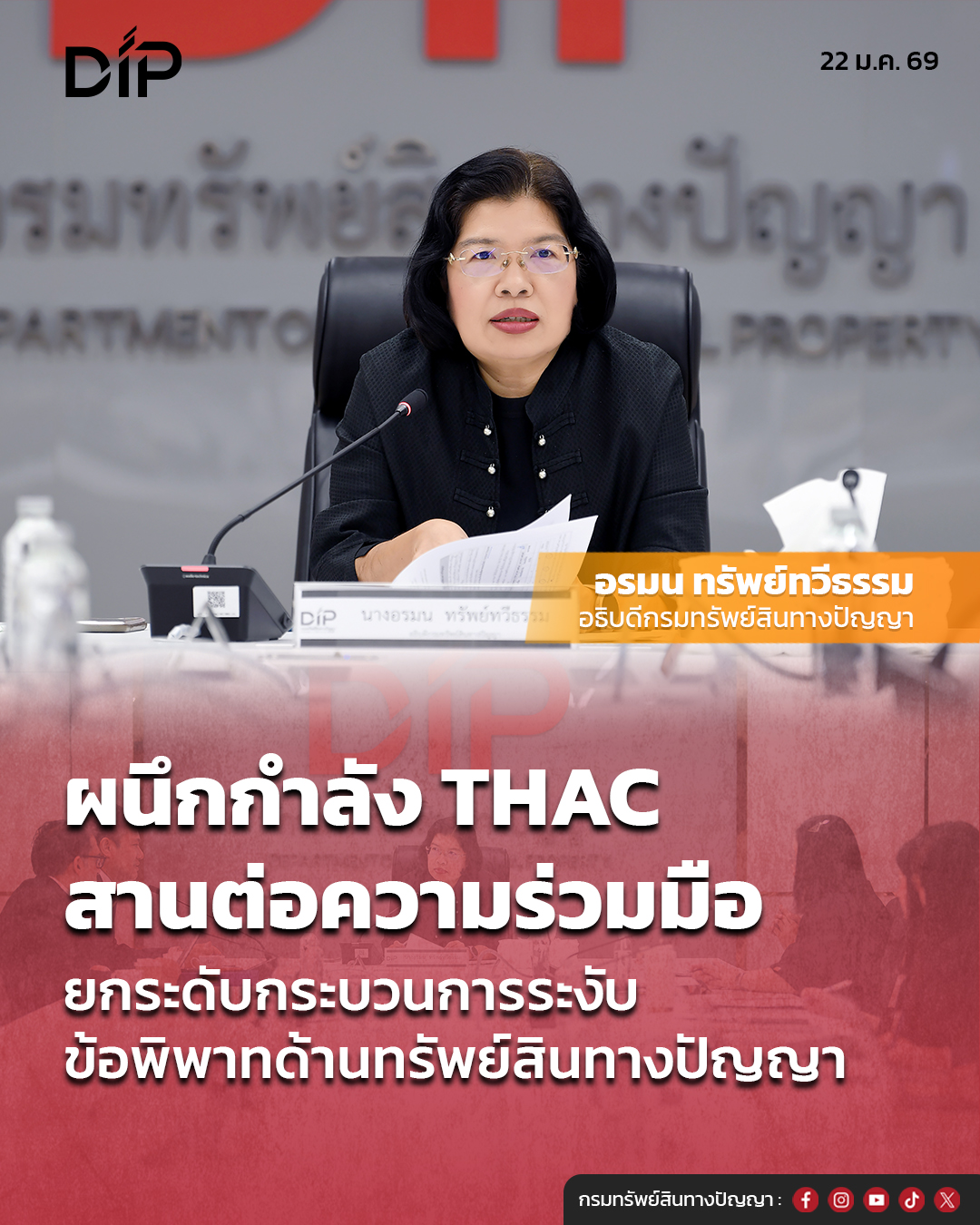 กรมทรัพย์สินทางปัญญา เดินหน้าความร่วมมือ THAC ยกระดับกระบวนการระงับข้อพิพาทด้านทรัพย์สินทางปัญญา ให้ทันสมัย ได้มาตรฐานสากล
