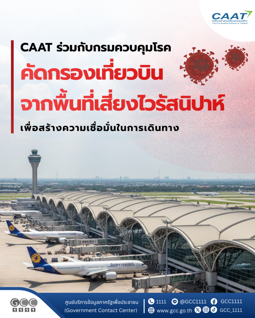 CAAT ย้ำมาตรการคัดกรองเที่ยวบินจากพื้นที่เสี่ยงไวรัสนิปาห์ สร้างความเชื่อมั่นการเดินทาง