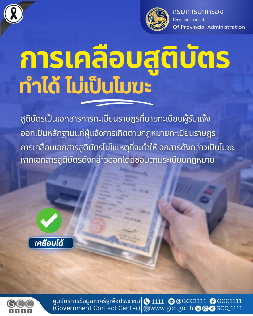 กรมการปกครอง เปิดเผย การเคลือบสูติบัตร ทำได้ ไม่เป็นโมฆะ