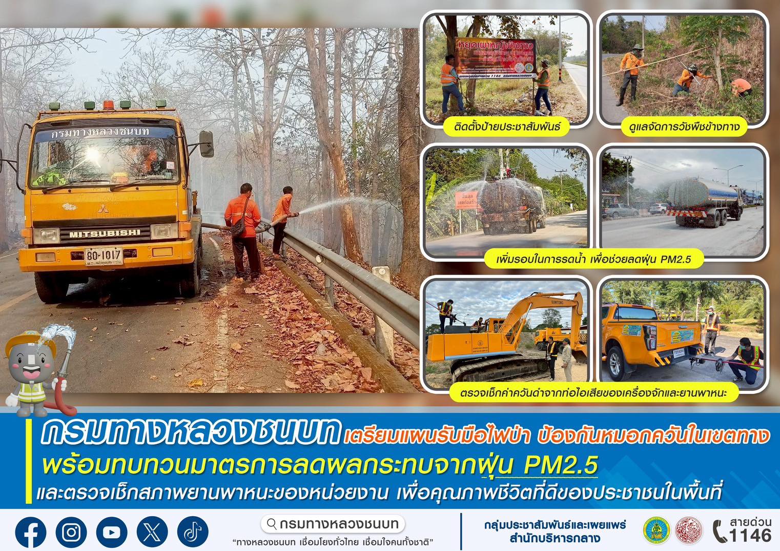 กรมทางหลวงชนบท เตรียมแผนรับมือไฟป่า ป้องกันหมอกควันในเขตทาง พร้อมทบทวนมาตรการลดผลกระทบจากฝุ่น PM2.5 และตรวจเช็กสภาพยานพาหนะของหน่วยงาน เพื่อคุณภาพชีวิตที่ดีของประชาชนในพื้นที่