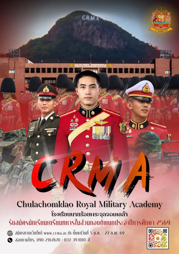 กองทัพบกขอเชิญชวนเยาวชนชายไทยผู้ที่มีความมุ่งมั่นและมีใจรักในอาชีพทหาร อายุระหว่าง 16 – 18 ปี และสำเร็จการศึกษาชั้น ม.4 หรือเทียบเท่า ก้าวเข้ามาเป็นส่วนหนึ่งของกองทัพบก โดยการสมัครสอบคัดเลือกเข้าเป็นนักเรียนเตรียมทหารในส่วนของกองทัพบก ประจำปีการศึกษา 2569 ผ่านทางเว็บไซต์ https://www.crma.ac.th ได้ตลอด 24 ชม.