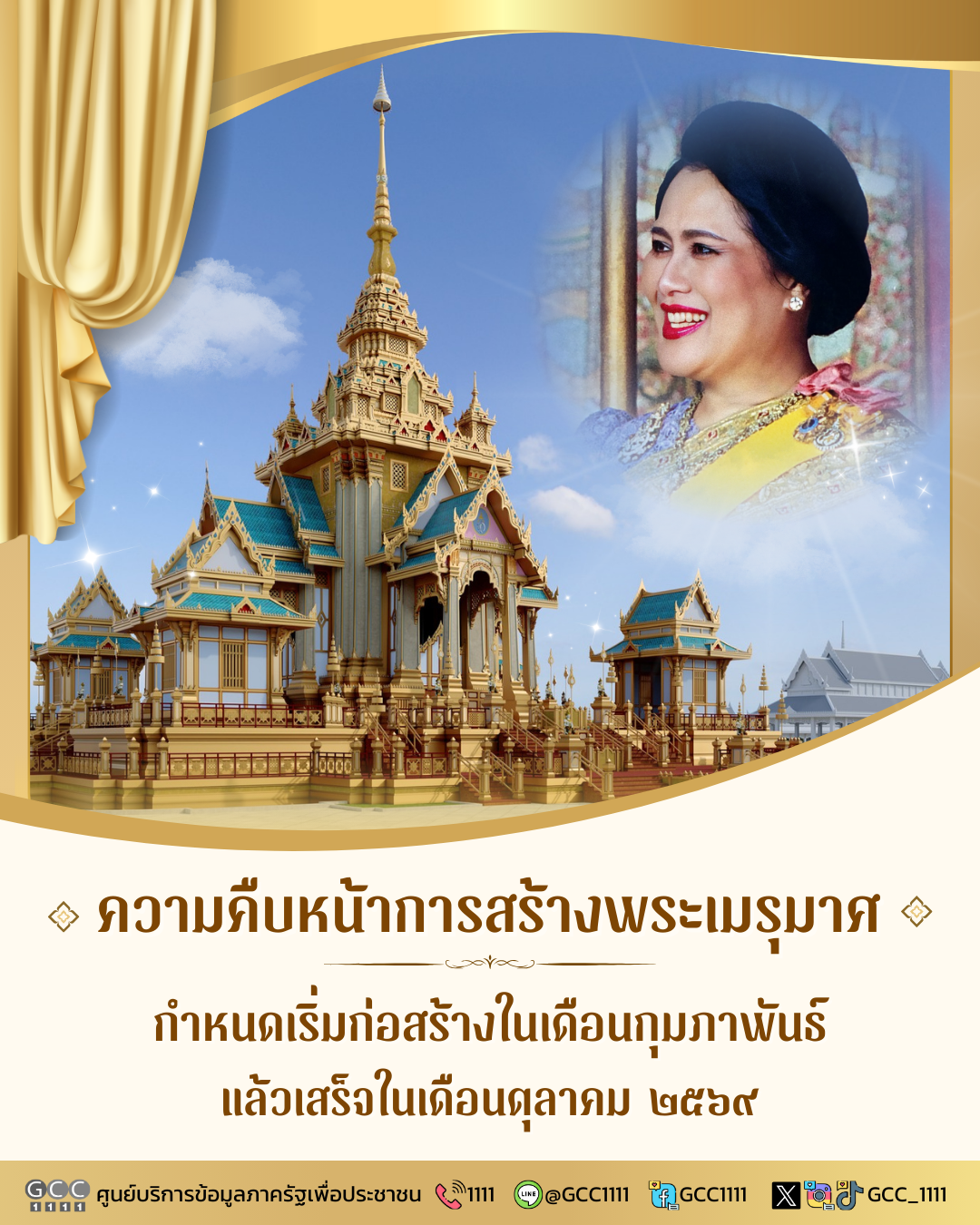 รัฐบาล แถลงความคืบหน้าการจัดสร้างพระเมรุมาศ และเครื่องประกอบ เนื่องในพระราชพิธีถวายพระเพลิงพระบรมศพสมเด็จพระนางเจ้าสิริกิติ์พระบรมราชินีนาถ พระบรมราชชนนีพันปีหลวง
