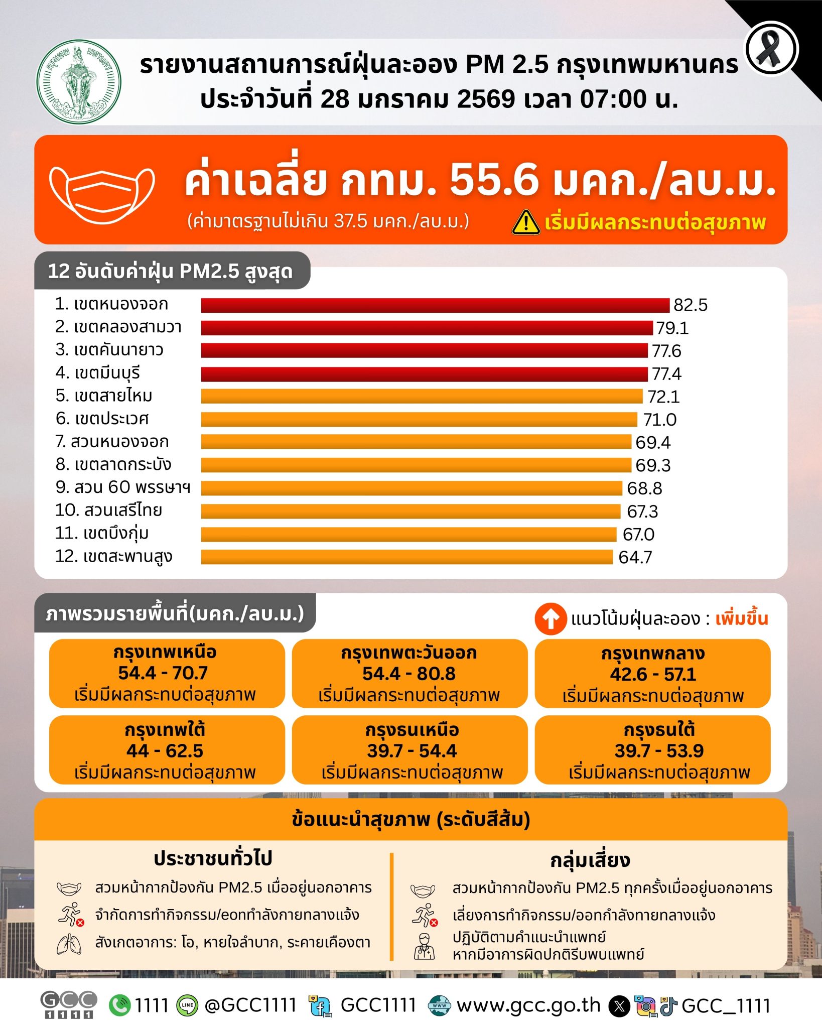 สถานการณ์ฝุ่นละออง PM 2.5 ในกรุงเทพมหานคร ประจำวันที่ 28 มกราคม 2569
