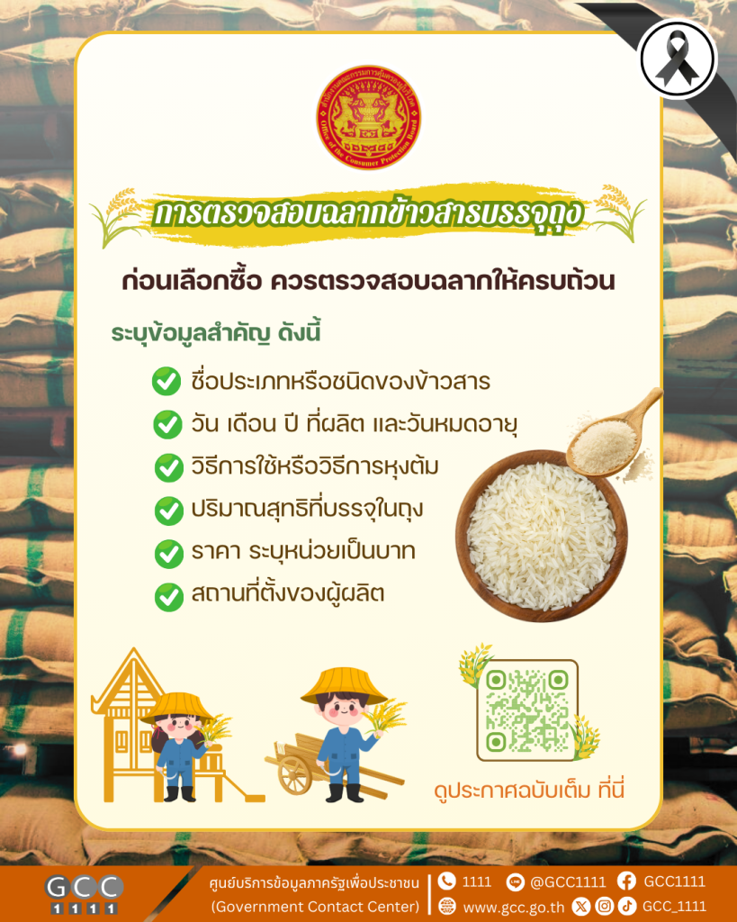 สำนักงานคณะกรรมการคุ้มครองผู้บริโภค แนะนำฉลากข้าวสารบรรจุถุง