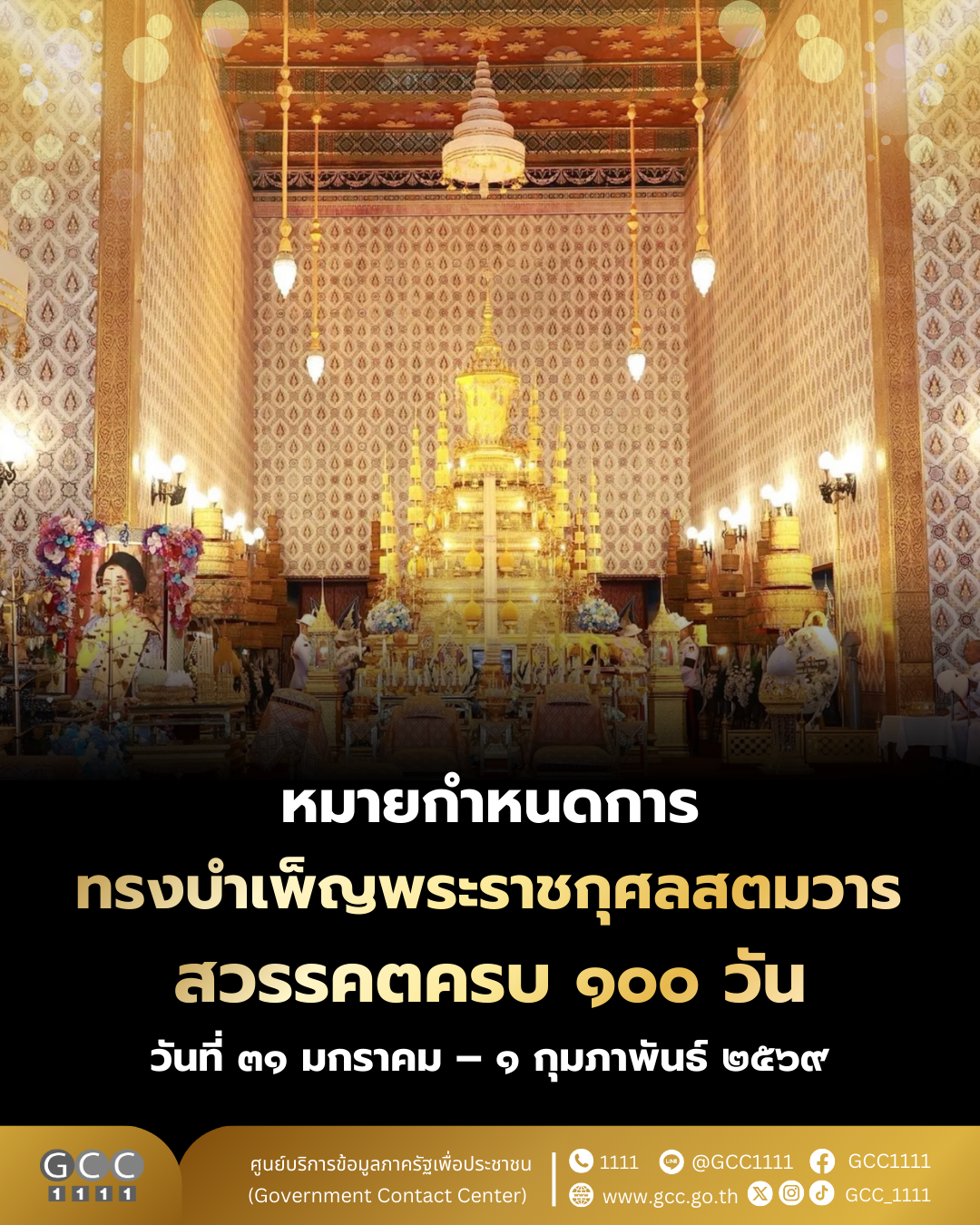 หมายกำหนดการทรงบำเพ็ญพระราชกุศลสตมวารถวายพระบรมศพ สมเด็จพระพันปีหลวง 100 วันสวรรคต ข่าวสารกิจกรรม, สมเด็จพระบรมราชชนนีพันปีหลวง หมายกำหนดการทรงบำเพ็ญพระราชกุศลสตมวารถวายพระบรมศพ สมเด็จพระพันปีหลวง 100 วันสวรรคต หมายกำหนดการพระราชพิธีทรงบำเพ็ญพระราชกุศลสตมวาร ถวายพระบรมศพ สมเด็จพระนางเจ้าสิริกิติ์ พระบรมราชินีนาถ พระบรมราชชนนีพันปีหลวง สำนักพระราชวัง ออกหมายกำหนดการพระราชพิธีทรงบำเพ็ญพระราชกุศลสตมวาร ถวายพระบรมศพ สมเด็จพระนางเจ้าสิริกิติ์ พระบรมราชินีนาถ พระบรมราชชนนีพันปีหลวง เนื่องในโอกาสเสด็จสวรรคตครบ 100 วัน ระหว่างวันที่ 31 มกราคม – 1 กุมภาพันธ์ 2569 ณ พระที่นั่งดุสิตมหาปราสาท ในพระบรมมหาราชวัง ที่มา : เว็บไซต์ราชกิจจานุเบกษา Post Views: 571 FacebookFacebookXTwitterLINELine