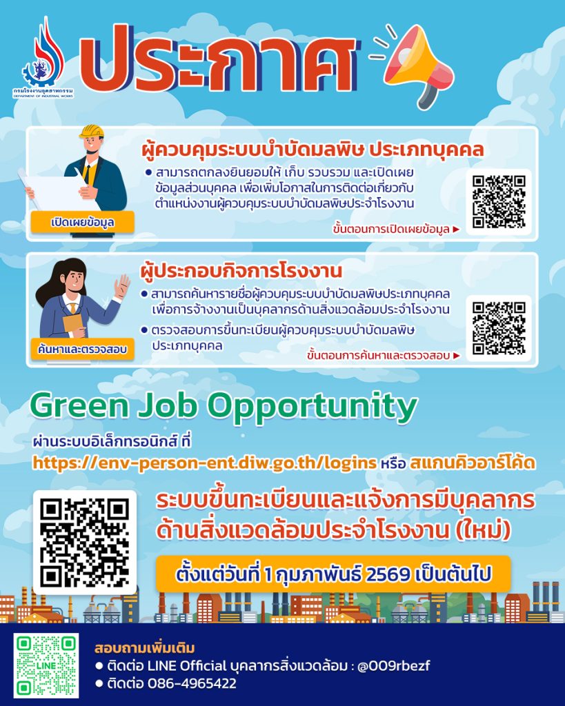 ดีเดย์ 1 ก.พ. นี้! กรมโรงงานฯ เปิดระบบขึ้นทะเบียนบุคลากรด้านสิ่งแวดล้อมใหม่