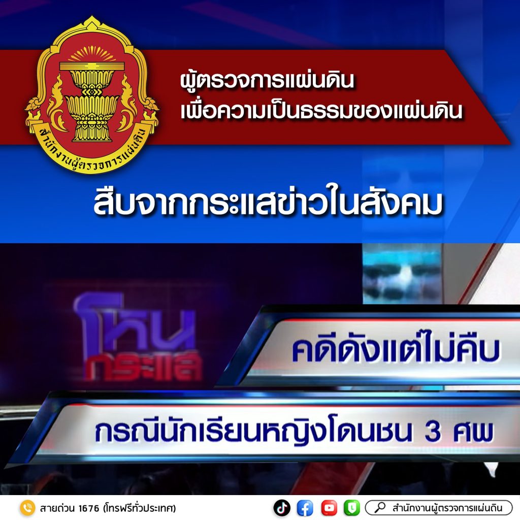 สำนักงานผู้ตรวจการแผ่นดิน แจ้งสืบจากกระแสข่าวในสังคม