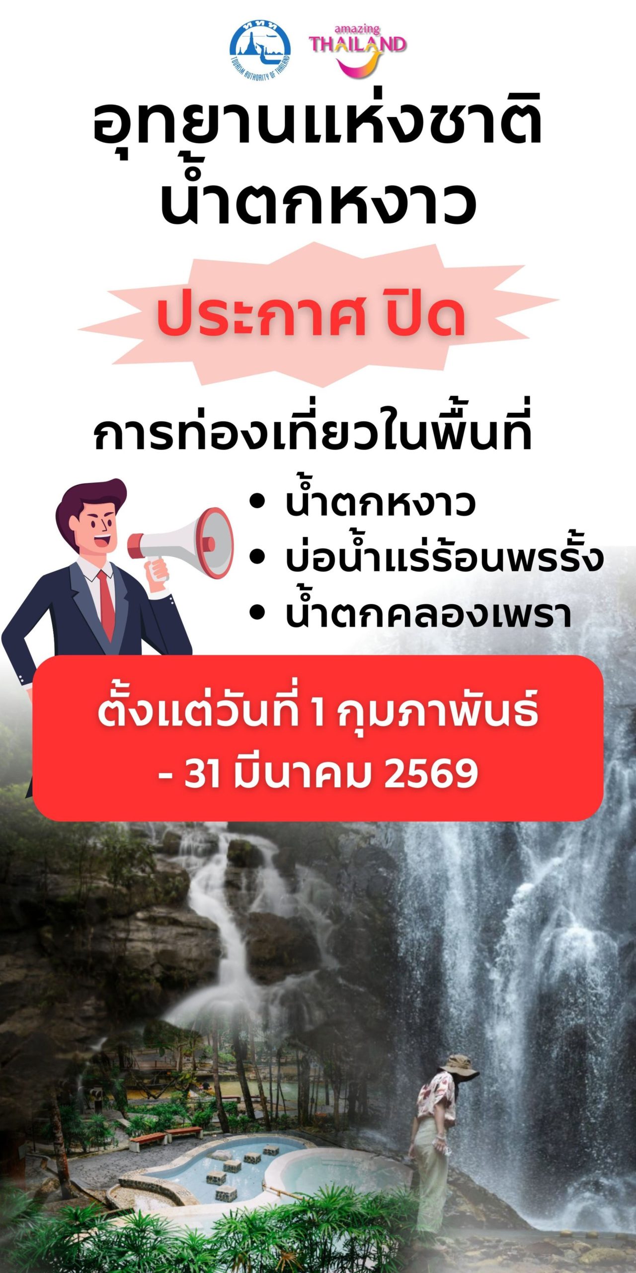 อุทยานแห่งชาติน้ำตกหงาว จังหวัดระนอง ประกาศ ปิดการท่องเที่ยวในพื้นที่ น้ำตกหงาวบ่อน้ำแร่ร้อนพรรั้ง และน้ำตกคลองเพรา จังหวัดชุมพร ตั้งแต่วันที่ 1 กุมภาพันธ์ – 31 มีนาคม 2569 เพื่อฟื้นฟูทรัพยากรธรรมชาติ แนะนำนักท่องเที่ยววางแผนเที่ยวจุดอื่น ๆ ในจังหวัดระนอง