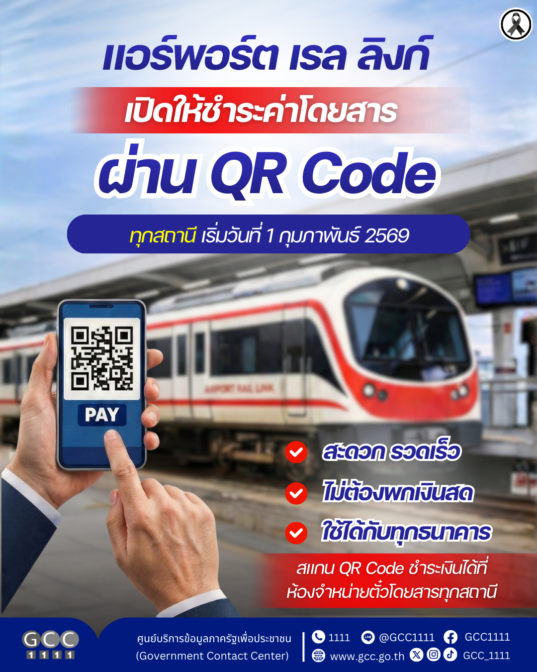 แอร์พอร์ต เรล ลิงก์ เปิดให้ชำระค่าโดยสารผ่าน QR Code ทุกสถานี เริ่มวันที่ 1 กุมภาพันธ์ 2569 ข่าวสารกิจกรรม แอร์พอร์ต เรล ลิงก์ เปิดให้ชำระค่าโดยสารผ่าน QR Code ทุกสถานี เริ่มวันที่ 1 กุมภาพันธ์ 2569 รถไฟฟ้าแอร์พอร์ต เรล ลิงก์ เปิดให้บริการชำระเงินผ่านระบบ QR Code สำหรับการซื้อเหรียญโดยสารและการเติมเงินบัตรโดยสาร ครอบคลุมทุกสถานี ตั้งแต่วันที่ 1 กุมภาพันธ์ 2569 เป็นต้นไป รถไฟฟ้าแอร์พอร์ต เรล ลิงก์ เปิดให้บริการชำระเงินผ่านระบบ QR Code สำหรับการซื้อเหรียญโดยสารและการเติมเงินบัตรโดยสาร เพื่ออำนวยความสะดวก รวดเร็ว และตอบโจทย์การเดินทางในยุคดิจิทัล ลดการใช้เงินสด และเพิ่มความคล่องตัวให้แก่ผู้โดยสาร การให้บริการดังกล่าวจะเริ่มตั้งแต่วันที่ 1 กุมภาพันธ์ 2569 เป็นต้นไป ครอบคลุมทุกสถานีตลอดเส้นทางรถไฟฟ้าแอร์พอร์ต เรล ลิงก์ โดยผู้โดยสารสามารถสแกนชำระเงินผ่าน QR Code ได้กับทุกธนาคารที่ห้องจำหน่ายตั๋วโดยสารทุกสถานี ช่วยให้การเดินทางเป็นไปอย่างสะดวก ง่าย และพร้อมเดินทางได้ทันที ทั้งนี้ รถไฟฟ้าแอร์พอร์ต เรล ลิงก์ ยังคงมุ่งพัฒนาการให้บริการอย่างต่อเนื่อง เพื่อยกระดับคุณภาพการเดินทางและอำนวยความสะดวกแก่ประชาชนให้สอดคล้องกับรูปแบบการใช้ชีวิตในปัจจุบัน ที่มา : Facebook Airport Rail Link Post Views: 9 FacebookFacebookXTwitterLINELine