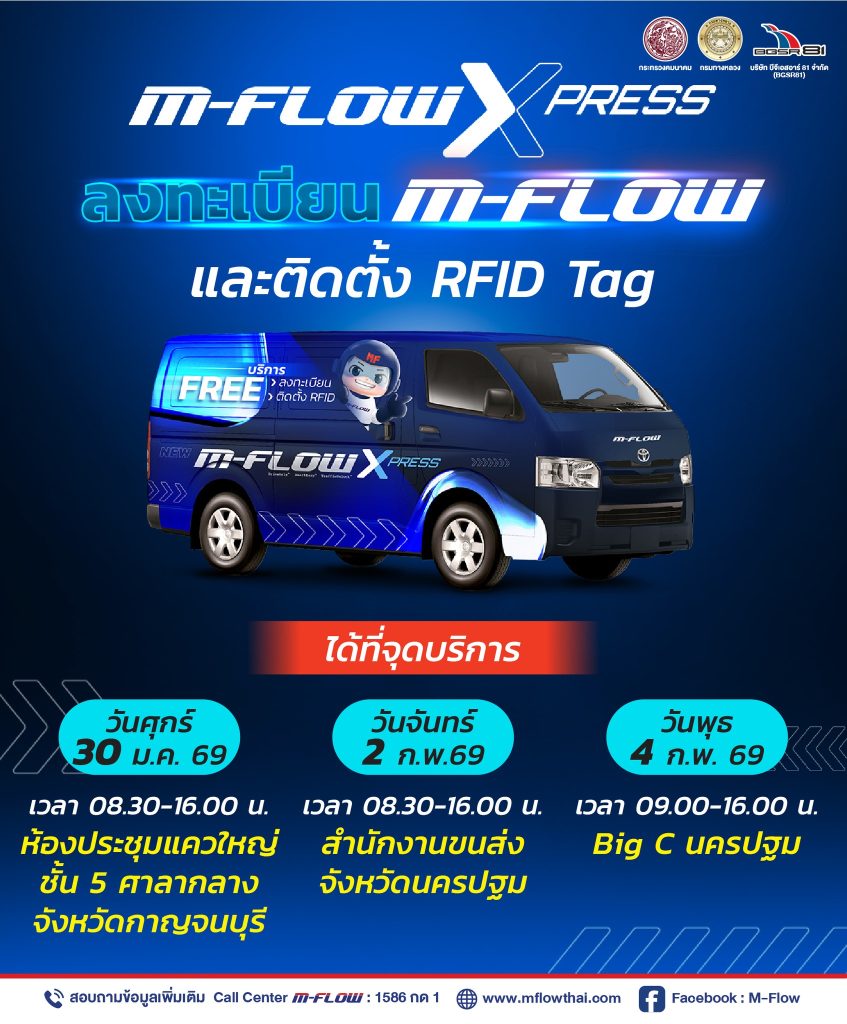 M-FLOW Xpress อำนวยความสะดวก ลงทะเบียน M-FLOW และติดตั้ง RFID Tag ฟรี