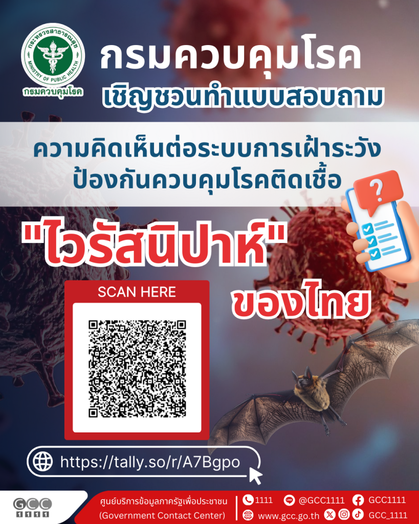กรมควบคุมโรค เชิญชวนทำแบบสอบถามความคิดเห็นต่อระบบการเฝ้าระวังป้องกันควบคุมโรคติดเชื้อ “ไวรัสนิปาห์”