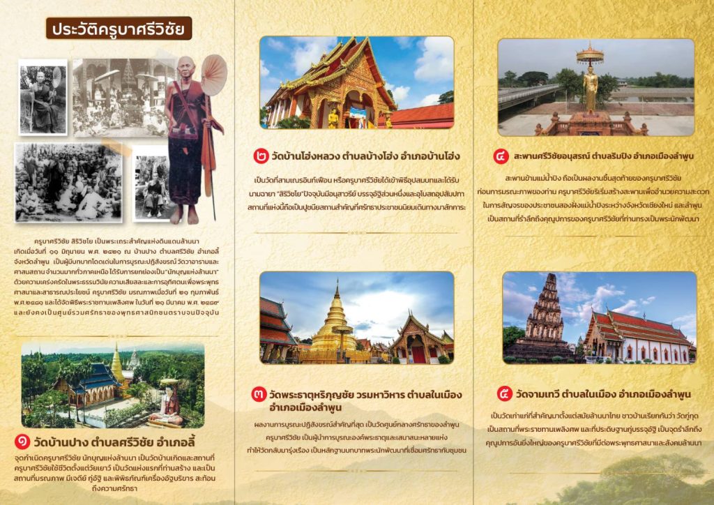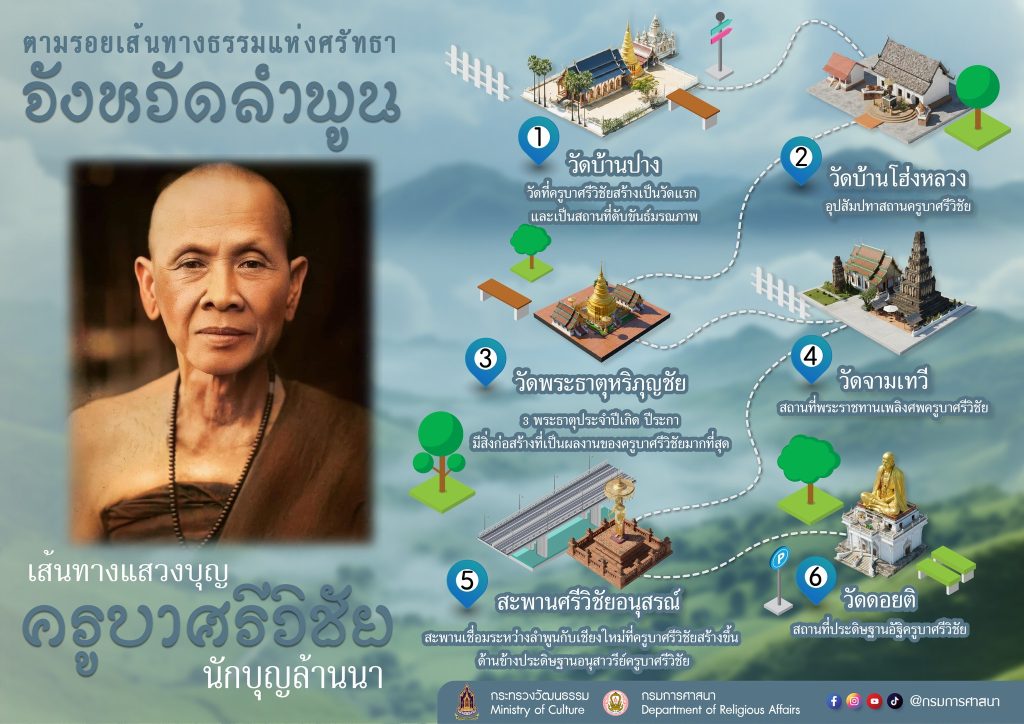 ตามรอยศรัทธาแห่งล้านนา สักการะสถานที่สำคัญที่เกี่ยวเนื่องกับ “ครูบาศรีวิชัย” ผู้เผยแผ่พระธรรมและสร้างคุณูปการต่อพระพุทธศาสนาและชาวล้านนากับเส้นทางศรัทธา ประวัติศาสตร์ และวัฒนธรรม ผ่าน 6 สถานที่สำคัญ
