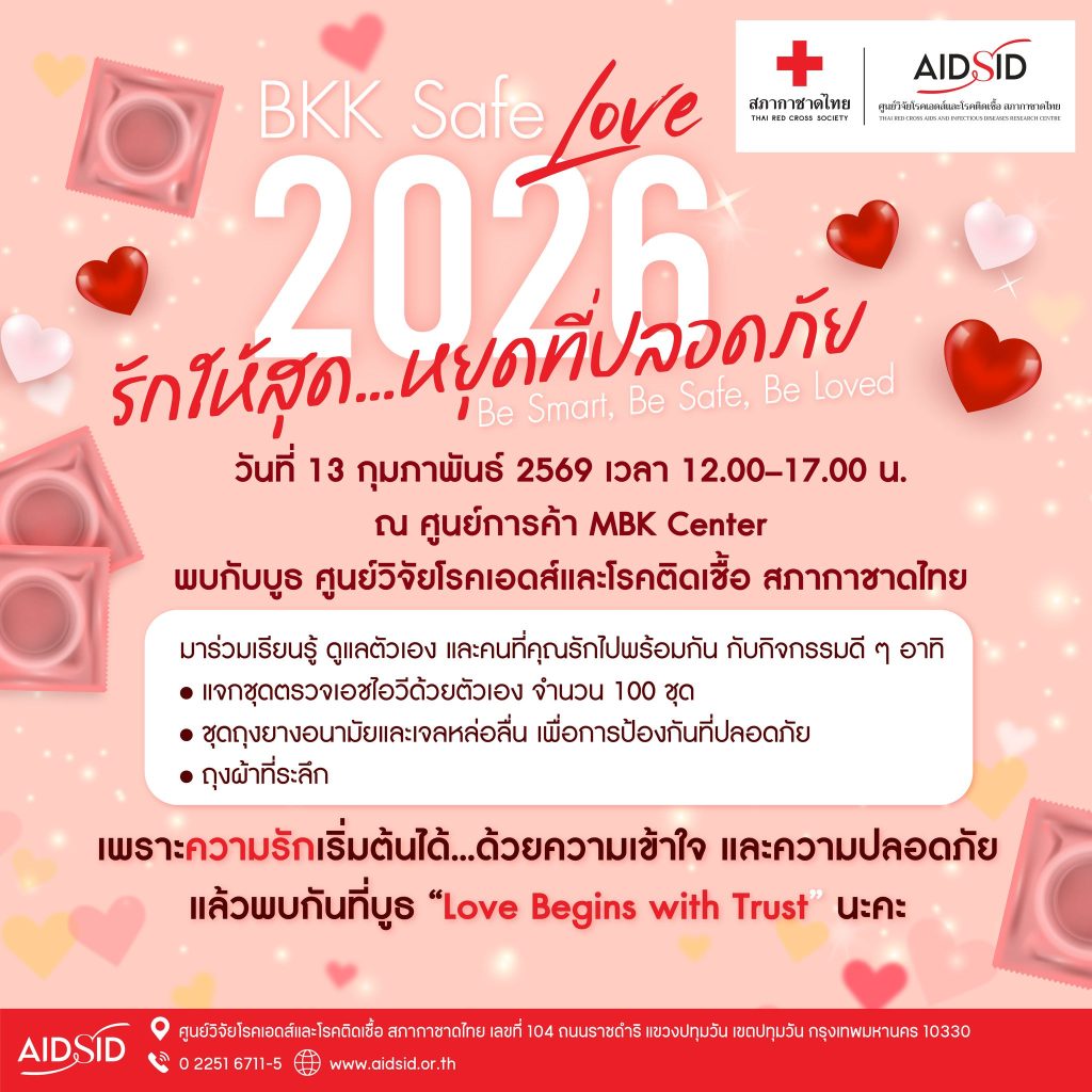 • สภากาชาดไทย โดยศูนย์วิจัยโรคเอดส์และโรคติดเชื้อ ร่วมออกบูธในงานรณรงค์ SAFE LOVE 2026