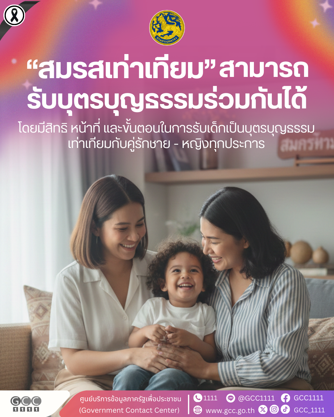กรมการปกครอง เผย “สมรสเท่าเทียม” สามารถรับบุตรบุญธรรมร่วมกันได้