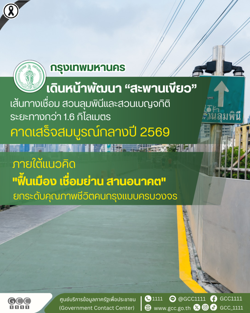 กรุงเทพมหานคร เผยความคืบหน้าโครงการปรับปรุง “สะพานเขียว” ทางเดิน – จักรยานยาวกว่า 1.6 กม. เชื่อมระหว่าง สวนลุมพินี และ สวนเบญจกิติ ภายใต้แนวคิด “ฟื้นเมือง เชื่อมย่าน สานอนาคต” คาดเสร็จสมบูรณ์กลางปี 2569 การปรับปรุงครั้งนี้เป็นการชุบชีวิตโครงสร้างเดิมอายุกว่า 20 ปี แก้ปัญหาโครงสร้างทรุดโทรม จุดอับสายตา และแสงสว่างไม่เพียงพอ