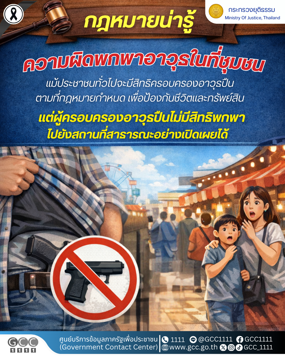 กระทรวงยุติธรรม เตือนห้ามพกพาอาวุธในที่ชุมชนโดยเปิดเผยและไม่มีเหตุสมควร