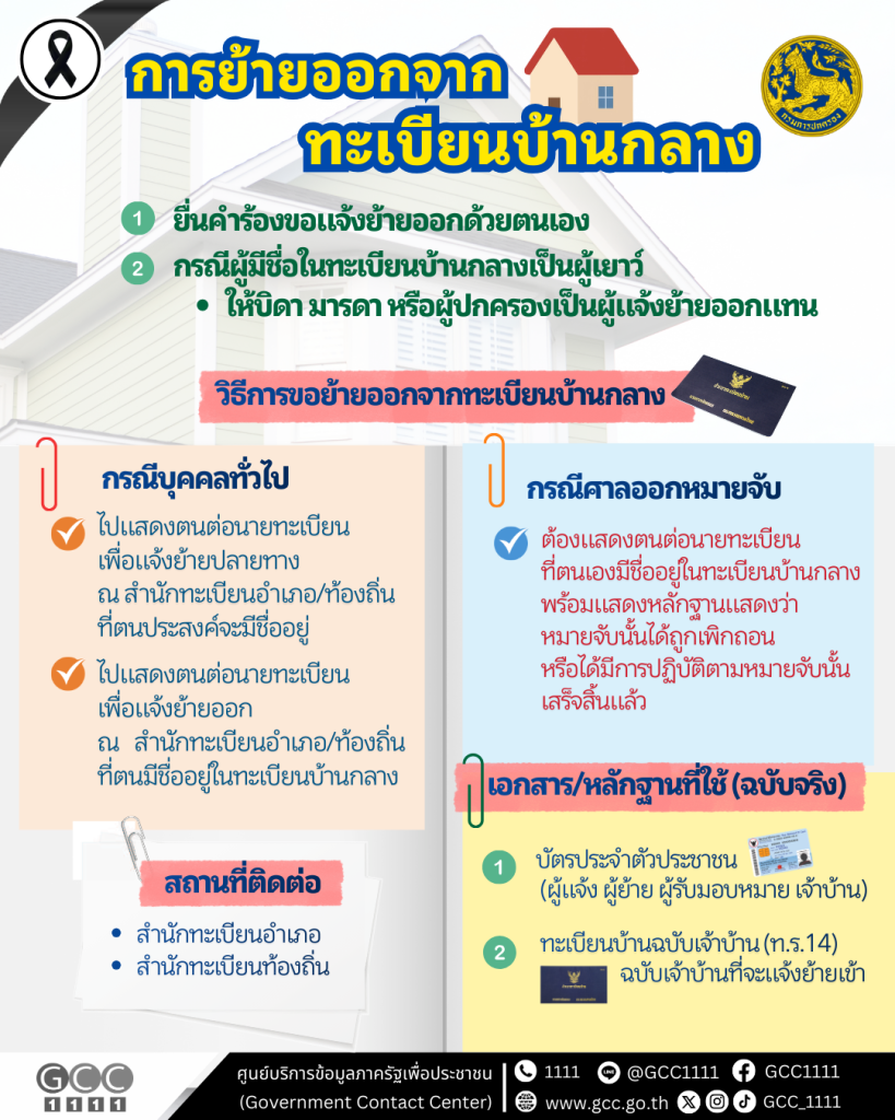 - วิธีการขอย้ายออกจากทะเบียนบ้านกลาง