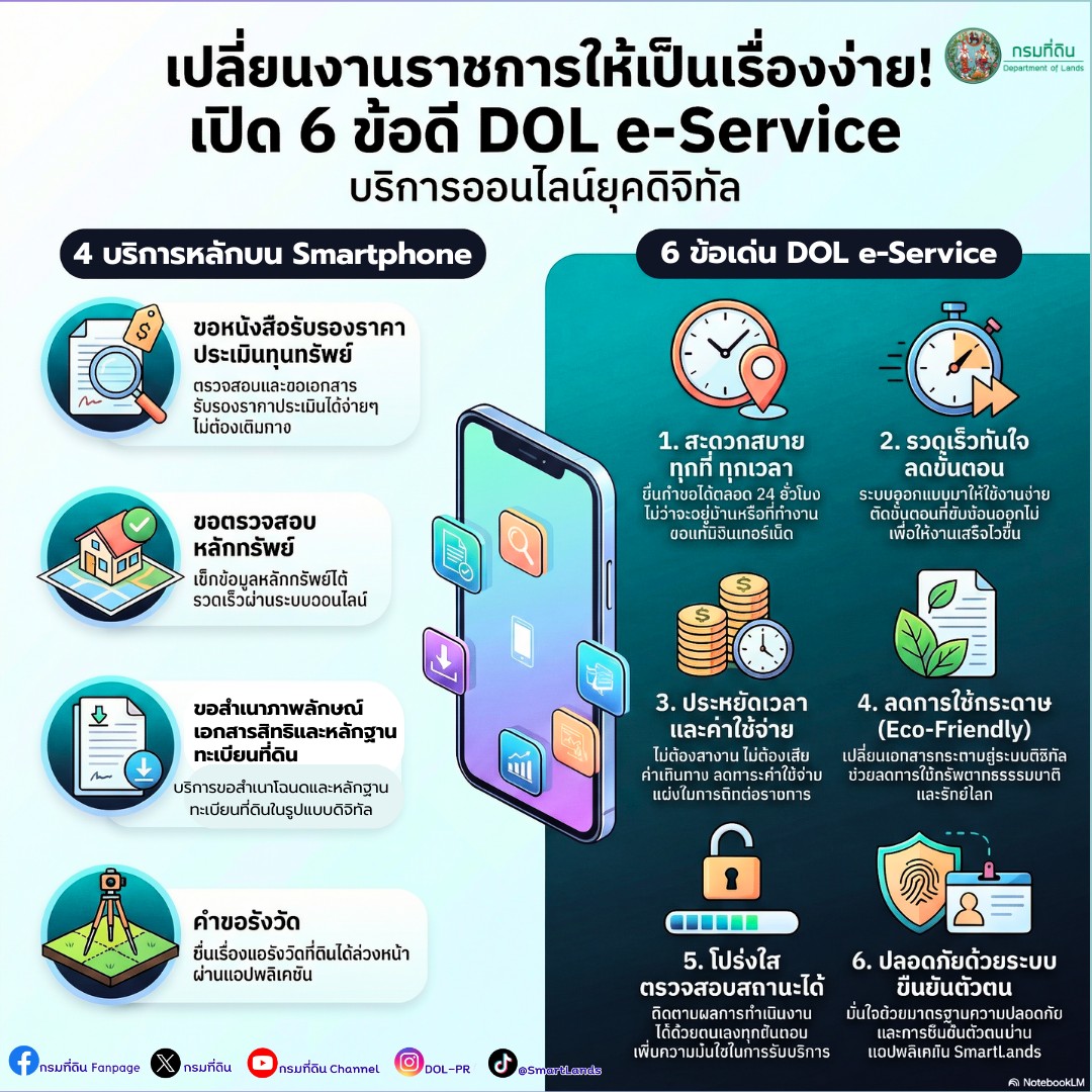 กรมที่ดิน แนะนำเปลี่ยนงานราชการให้เป็นเรื่องง่าย เปิด 6 ข้อดี DOL e-Service