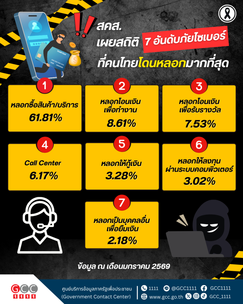 7 อันดับภัยไซเบอร์ที่คนไทยโดนหลอกมากที่สุด