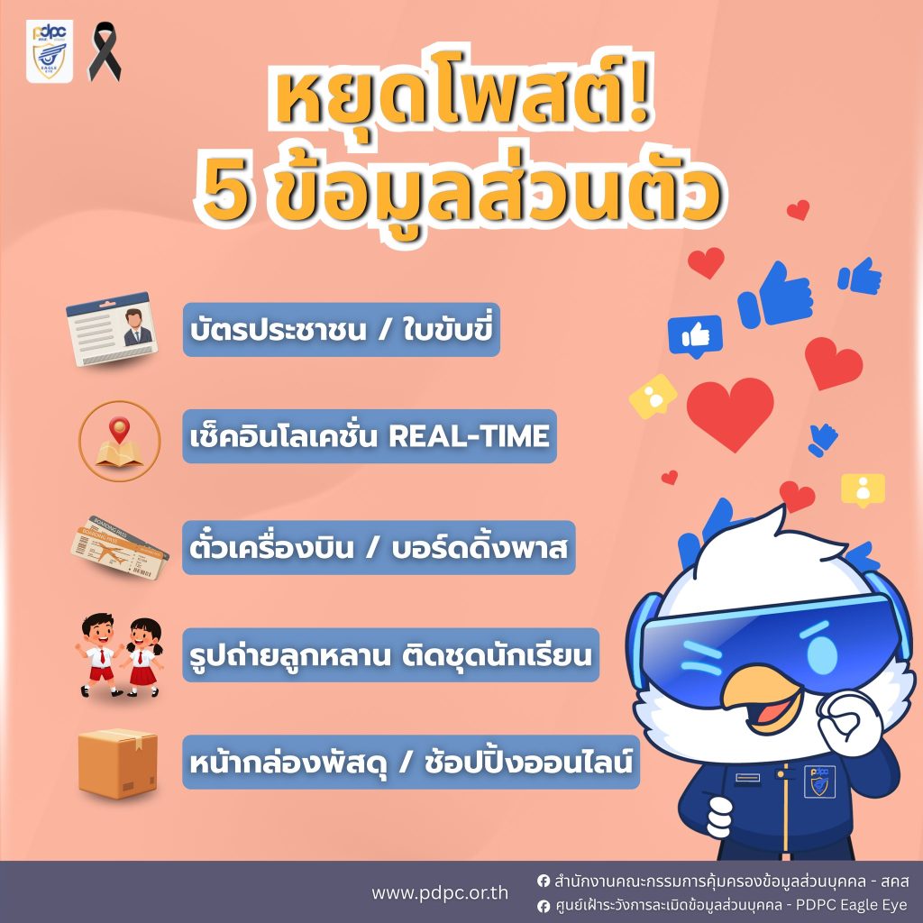 - สคส. เตือนภัย 5 ข้อมูลส่วนตัว ที่ไม่ควรโพสต์ลงโซเชียลเสี่ยงถูกมิจฉาชีพนำข้อมูลไปใช้