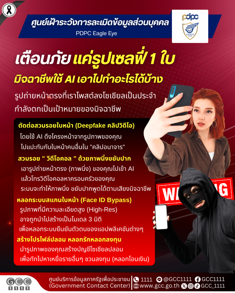 ศูนย์เฝ้าระวังการละเมิดข้อมูลส่วนบุคคล เตือนแค่รูปเซลฟี่ 1 ใบ มิจฉาชีพใช้ AI เอาไปทำอะไรได้บ้าง