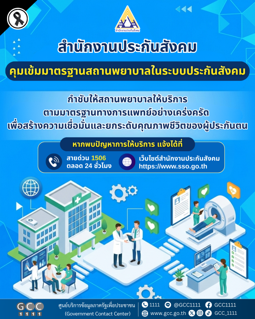 เลขาธิการสำนักงานประกันสังคม ย้ำว่าการจัดบริการทางการแพทย์ที่มีคุณภาพและความปลอดภัยสูงสุดสำหรับผู้ประกันตนเป็นภารกิจสำคัญ โดยผู้ประกันตนทุกคนต้องได้รับบริการที่ได้มาตรฐาน เท่าเทียม ทั่วถึง และไม่เลือกปฏิบัติ พร้อมเปิดรับฟังข้อเสนอแนะเพื่อนำไปสู่การพัฒนาระบบประกันสังคมให้มีความมั่นคงและตอบสนองความต้องการของผู้ประกันตนอย่างแท้จริง ทั้งนี้ ผู้ประกันตนที่พบปัญหาหรือข้อบกพร่องในการให้บริการของสถานพยาบาล สามารถแจ้งได้ที่สายด่วน 1506 ตลอด 24 ชั่วโมง หรือผ่านช่องทางออนไลน์ทางเว็บไซต์สำนักงานประกันสังคม