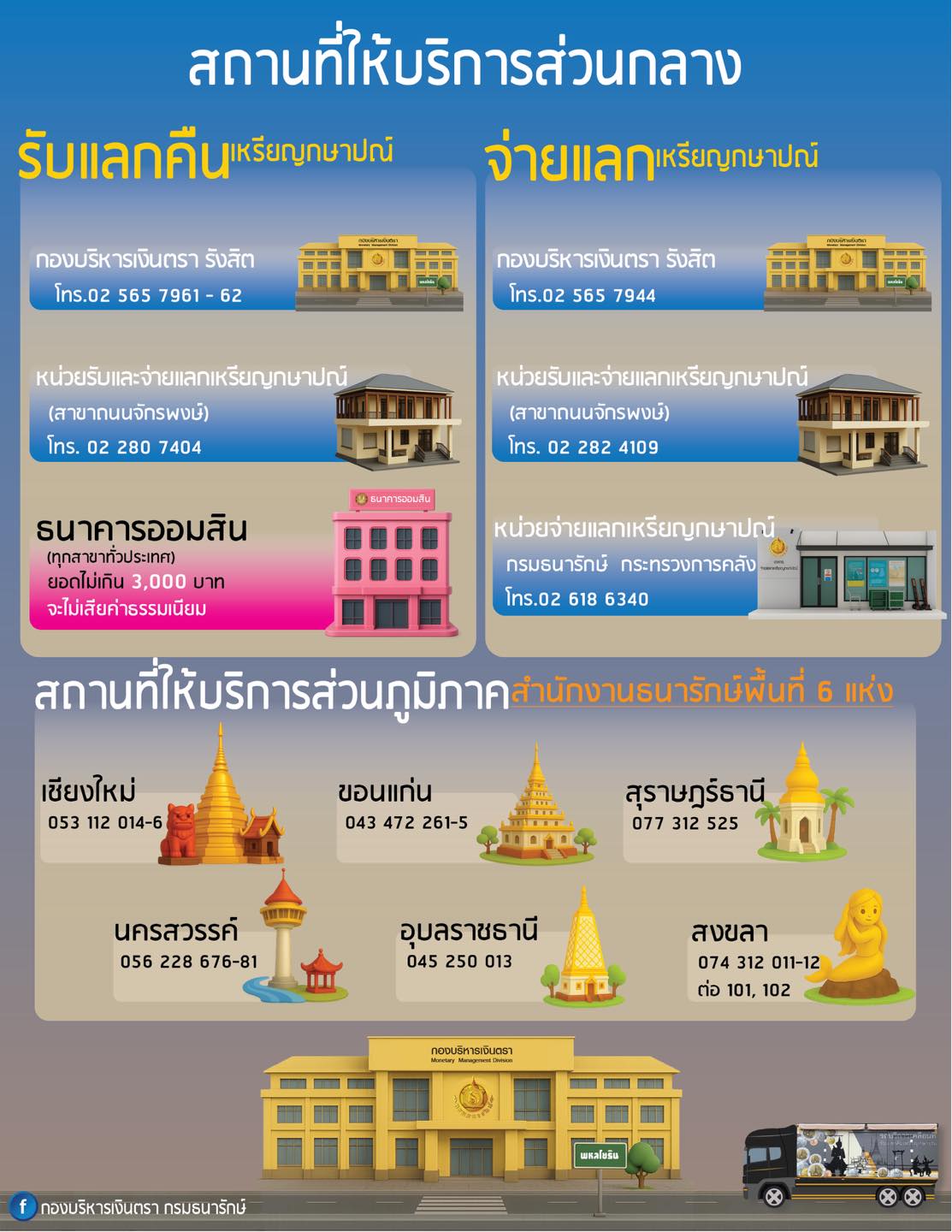 📌 กรมธนารักษ์ แนะนำจุดบริการรับแลกคืนและจ่ายแลกเหรียญกษาปณ์