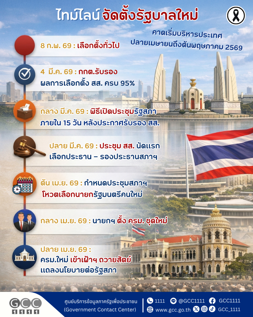 เปิดไทม์ไลน์จัดตั้งรัฐบาลใหม่ คาดเริ่มบริหารประเทศปลายเมษายนถึงต้นพฤษภาคม 2569