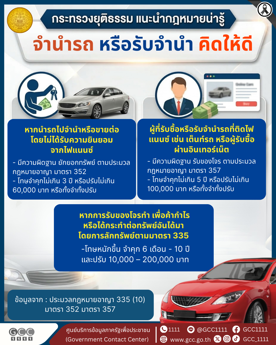 กระทรวงยุติธรรม แนะนำกฎหมายน่ารู้ ตอน จำนำรถ หรือรับจำนำ คิดให้ดี