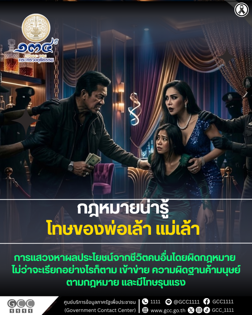 กระทรวงยุติธรรม แจ้งเตือน โทษของพ่อเล้า แม่เล้า