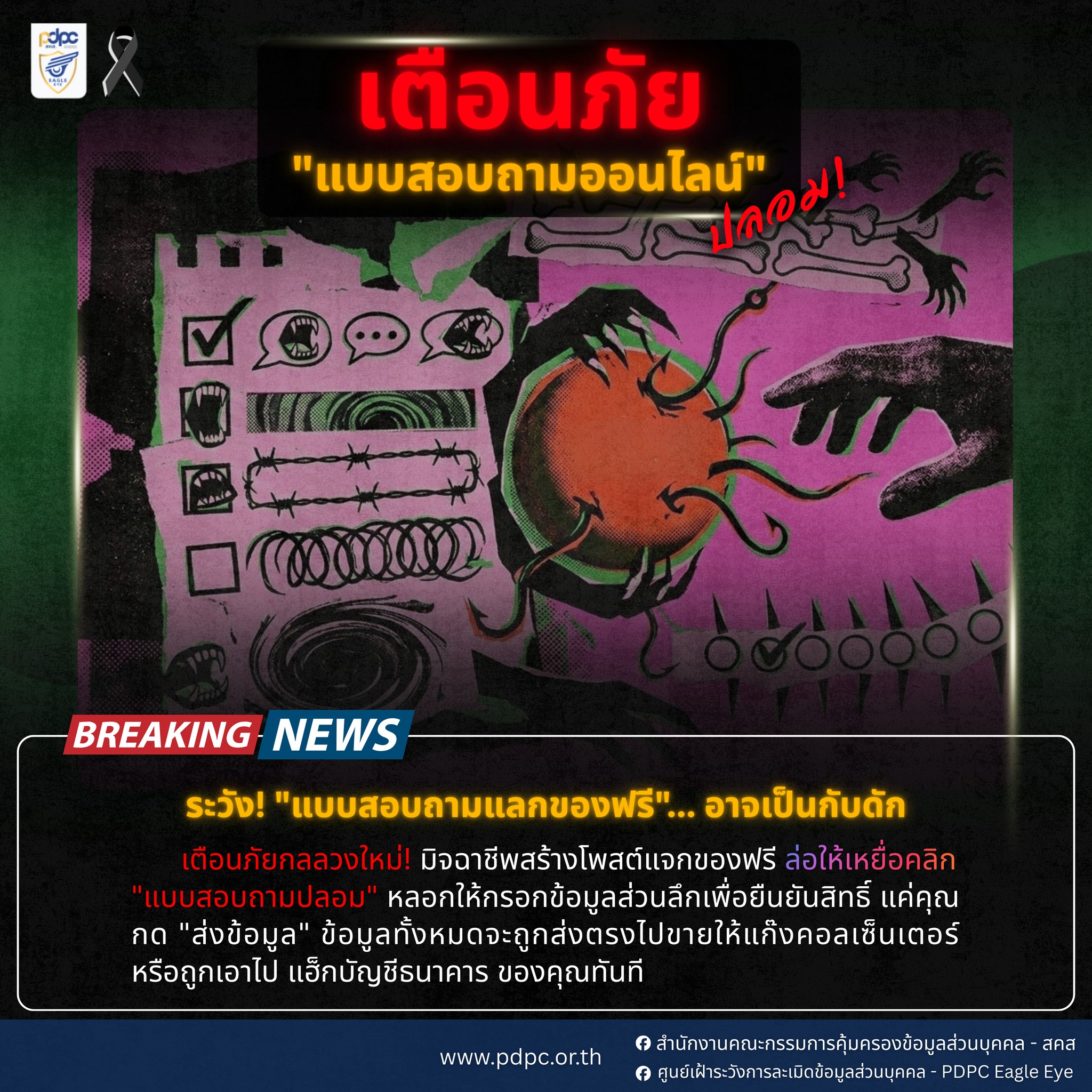 ศูนย์เฝ้าระวังการละเมิดข้อมูลส่วนบุคคล เตือนระวังแบบสอบถามออนไลน์ปลอม หลอกเก็บข้อมูลส่วนตัว