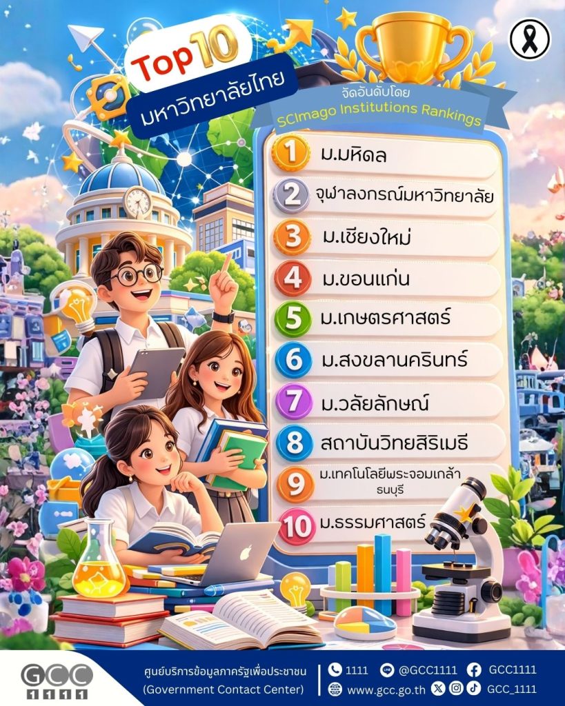 10 มหาวิทยาลัยไทย จากการจัดอันดับ โดย SCImago Institutions Rankings (SIR) สถาบันระดับโลก