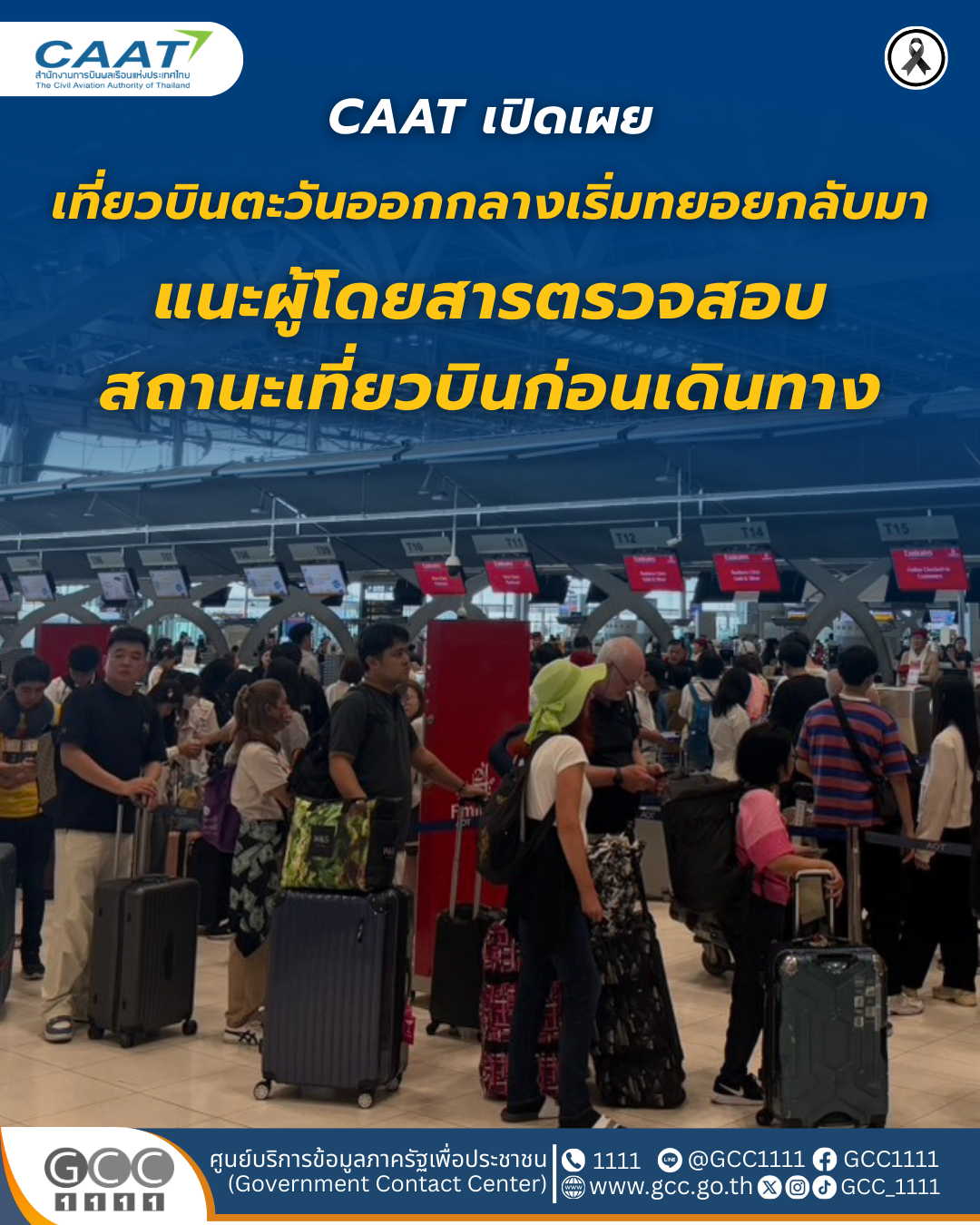 แม้แนวโน้มการดำเนินการด้านการบินในภูมิภาคจะเริ่มมีทิศทางฟื้นตัว แต่สถานการณ์ยังคงขึ้นอยู่กับปัจจัยด้านความมั่นคงในภูมิภาค ซึ่งอาจมีการเปลี่ยนแปลงได้ตลอดเวลา CAAT จึงขอแนะนำให้ผู้โดยสารตรวจสอบสถานะเที่ยวบินกับสายการบินก่อนเดินทาง และเผื่อเวลาในการเดินทางมายังท่าอากาศยาน เนื่องจากบางเที่ยวบินอาจมีการปรับเปลี่ยนเส้นทางบิน ซึ่งอาจส่งผลให้ระยะเวลาในการเดินทางเปลี่ยนแปลงได้