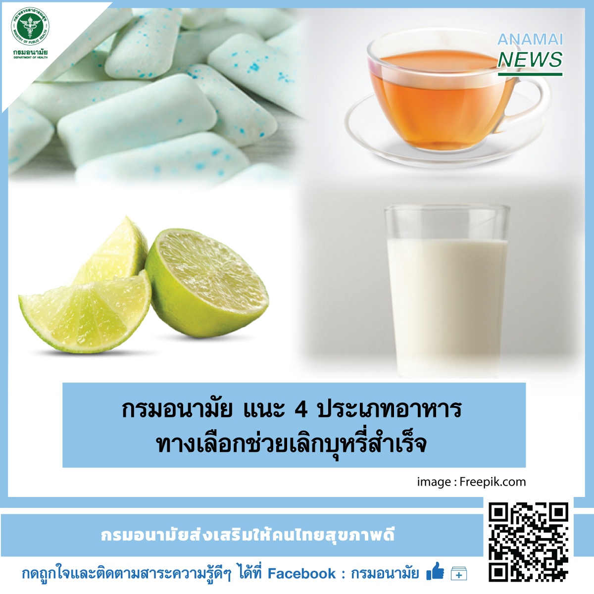 กรมอนามัย กระทรวงสาธารณสุข แนะนำ 4 ประเภทอาหาร เพื่อเป็นทางเลือกช่วยเลิกบุหรี่ได้สำเร็จ พร้อมชี้อาหารบางชนิดกระตุ้นความอยากบุหรี่ ควรเลี่ยง