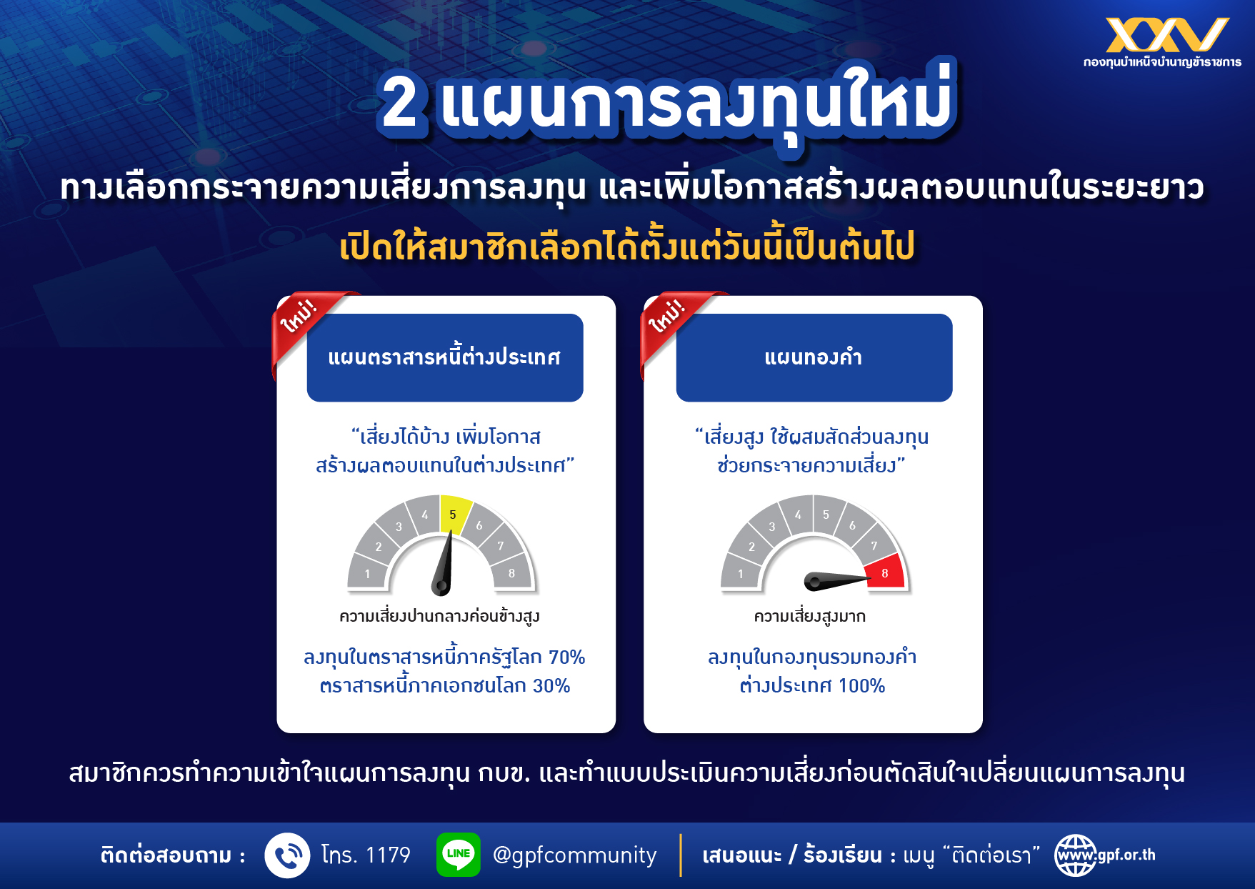 กบข. เพิ่มทางเลือกให้สมาชิก เปิดตัวแผนลงทุนใหม่ “แผนทองคำ และตราสารหนี้ต่างประเทศ”