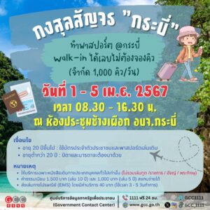 กรมการกงสุลสัญจร เปิดทำพาสปอร์ต จังหวัดกระบี่ วันที่ 1 – 5 เม.ย. 2567