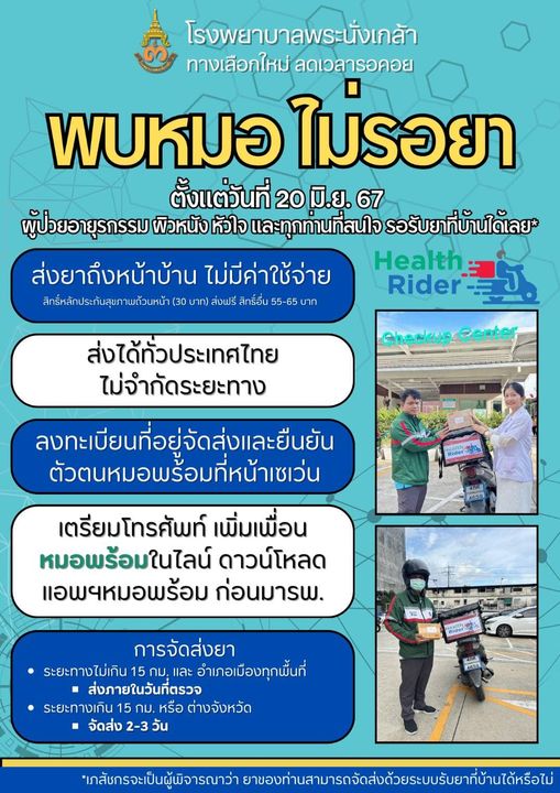โรงพยาบาลพระนั่งเกล้า เปิดให้บริการส่งยาถึงหน้าบ้าน ตั้งแต่วันที่ 20 มิถุนายน 2567